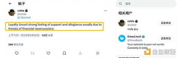 在 friend.tech 发布这份声明后,大佬cobie在评论区进行了幽默又精准的补刀,来了个名词解释: