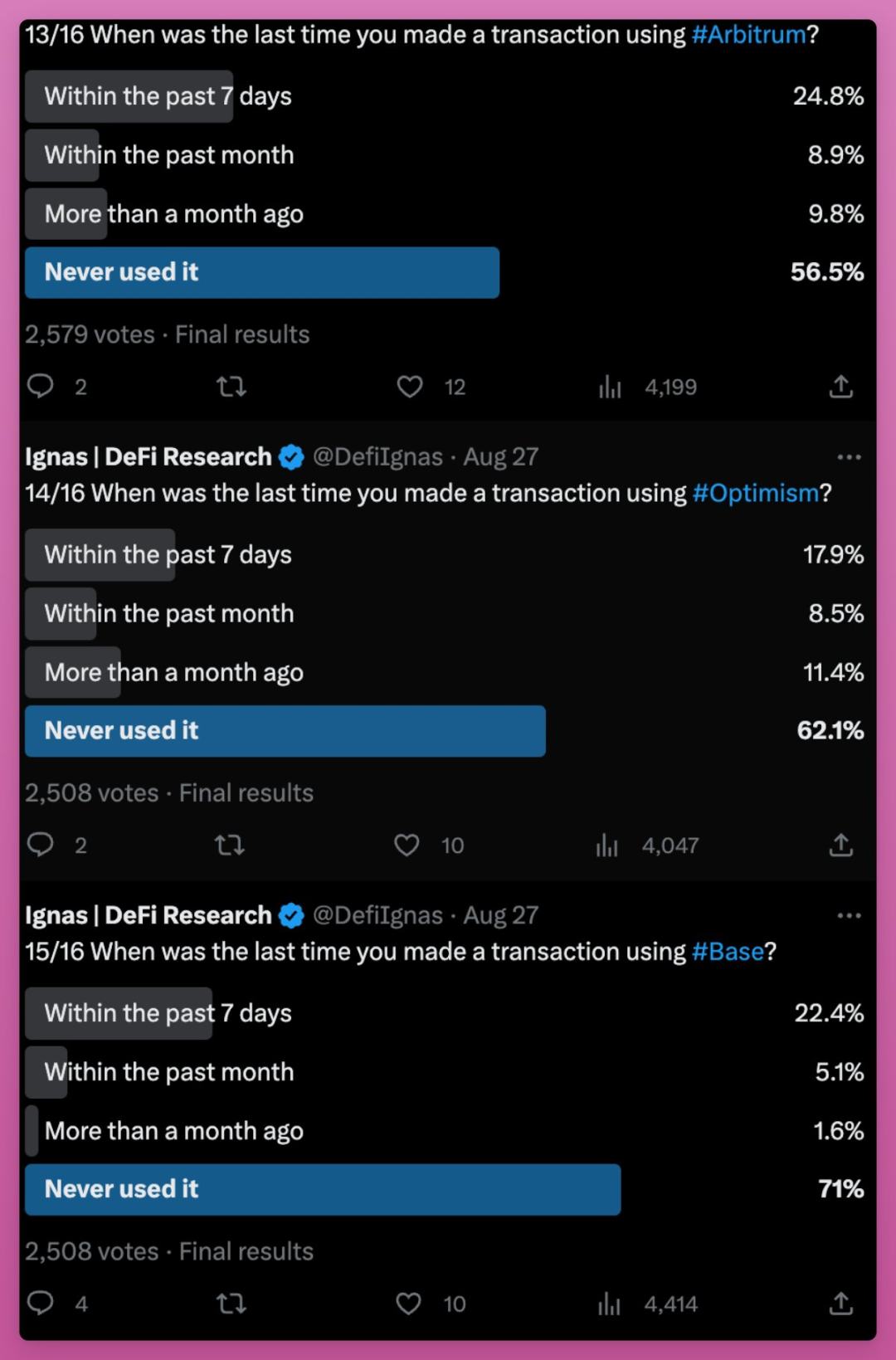本次调查不符合基本的科学研究标准,它仅代表 Crypto Twitter 对 DeFi 感兴趣的用户的一小部分。此外,Cardano 和 Polygon 社区更加活跃,可能导致其他社区代表性不足。