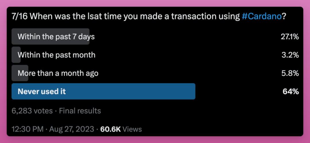 尽管如此, 64% 的受访者从未使用过 Cardano。