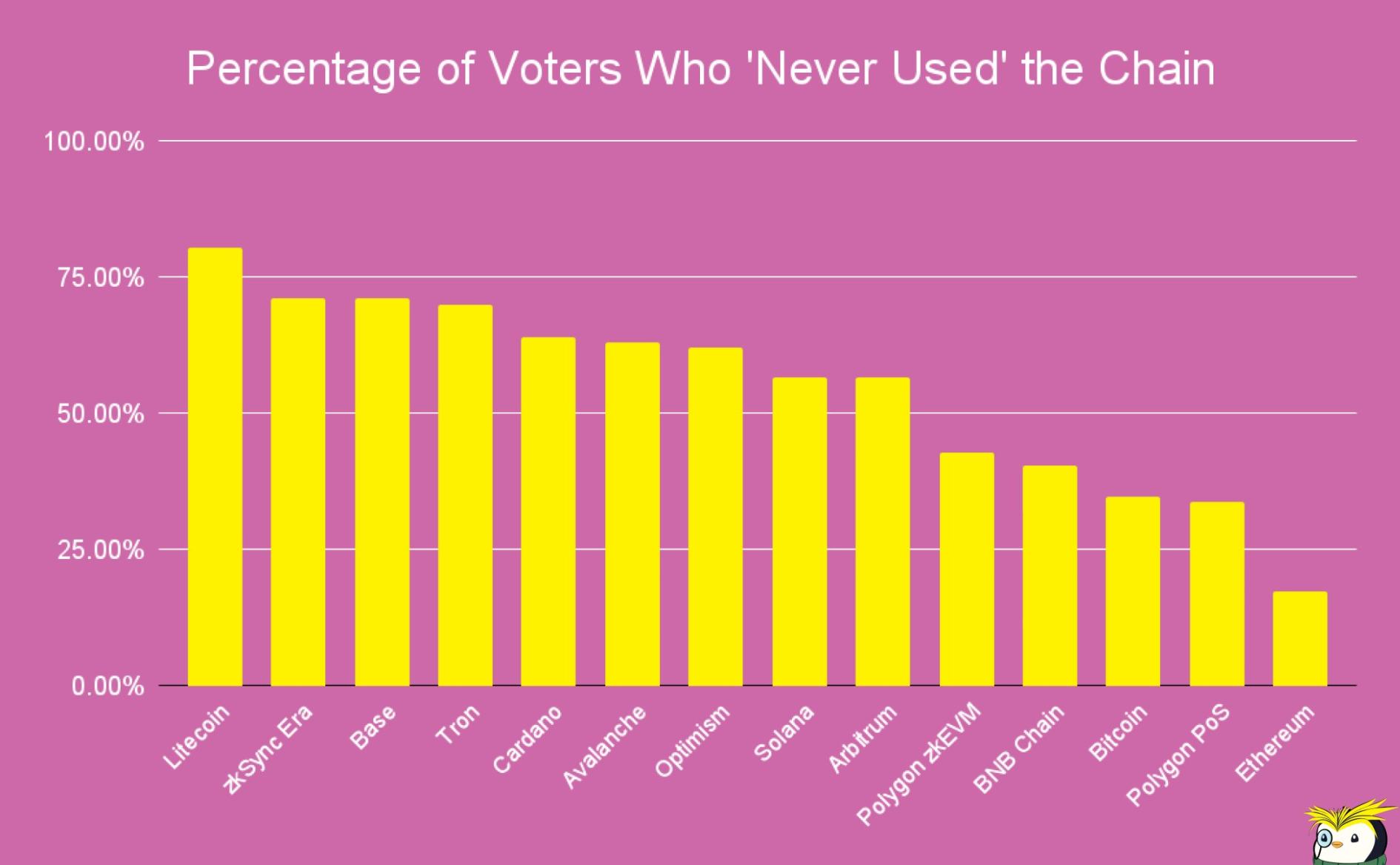 根据 Defillama 数据,它的每日活跃用户排名第一,但超过 70% 的投票者从未使用过。