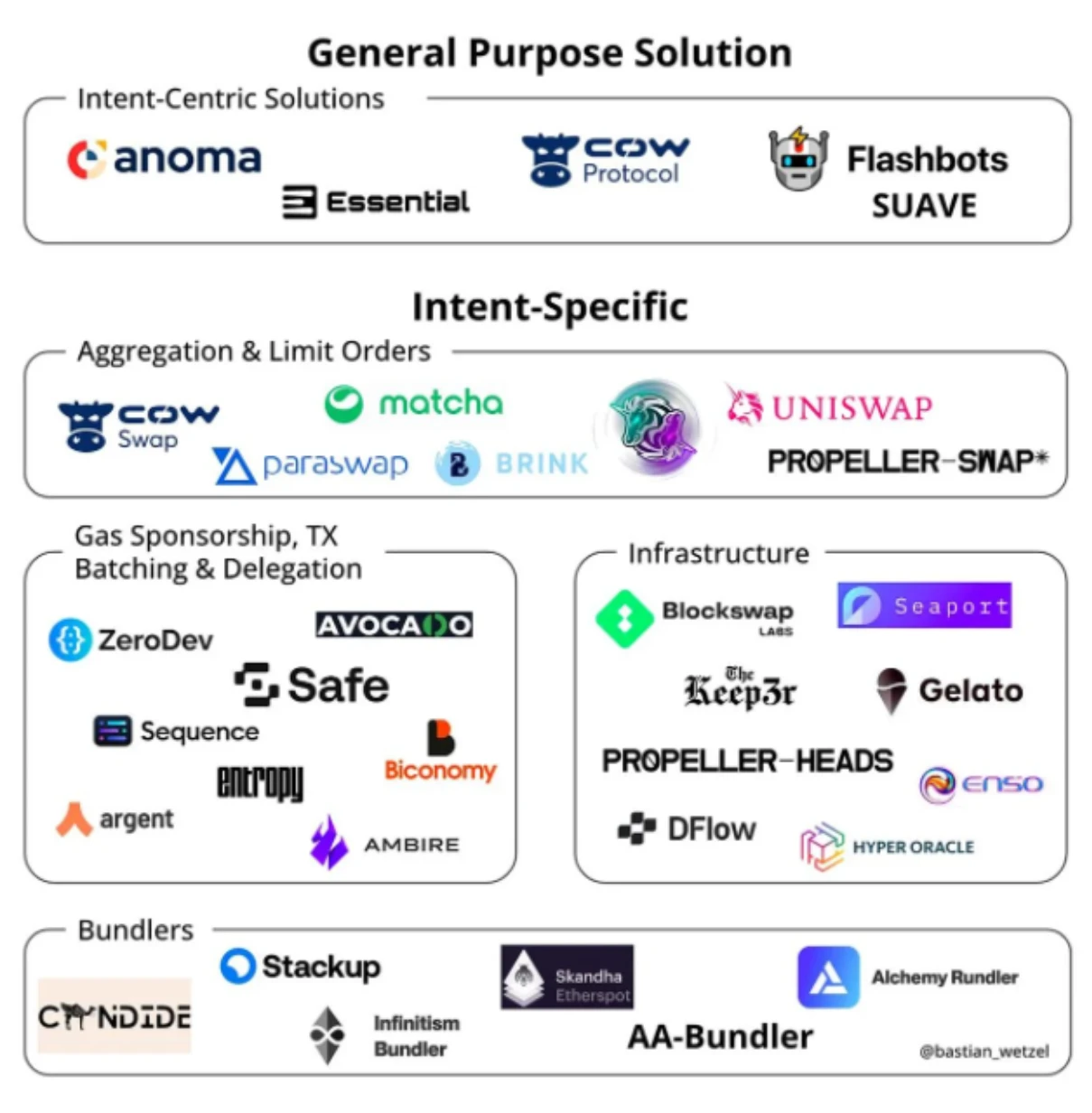 从 CV Labs 的 Bastian Wetzel 制作的上图中 ,Odaily星球日报选出一些具有代表性的项目,进一步介绍 intent 的应用现状。