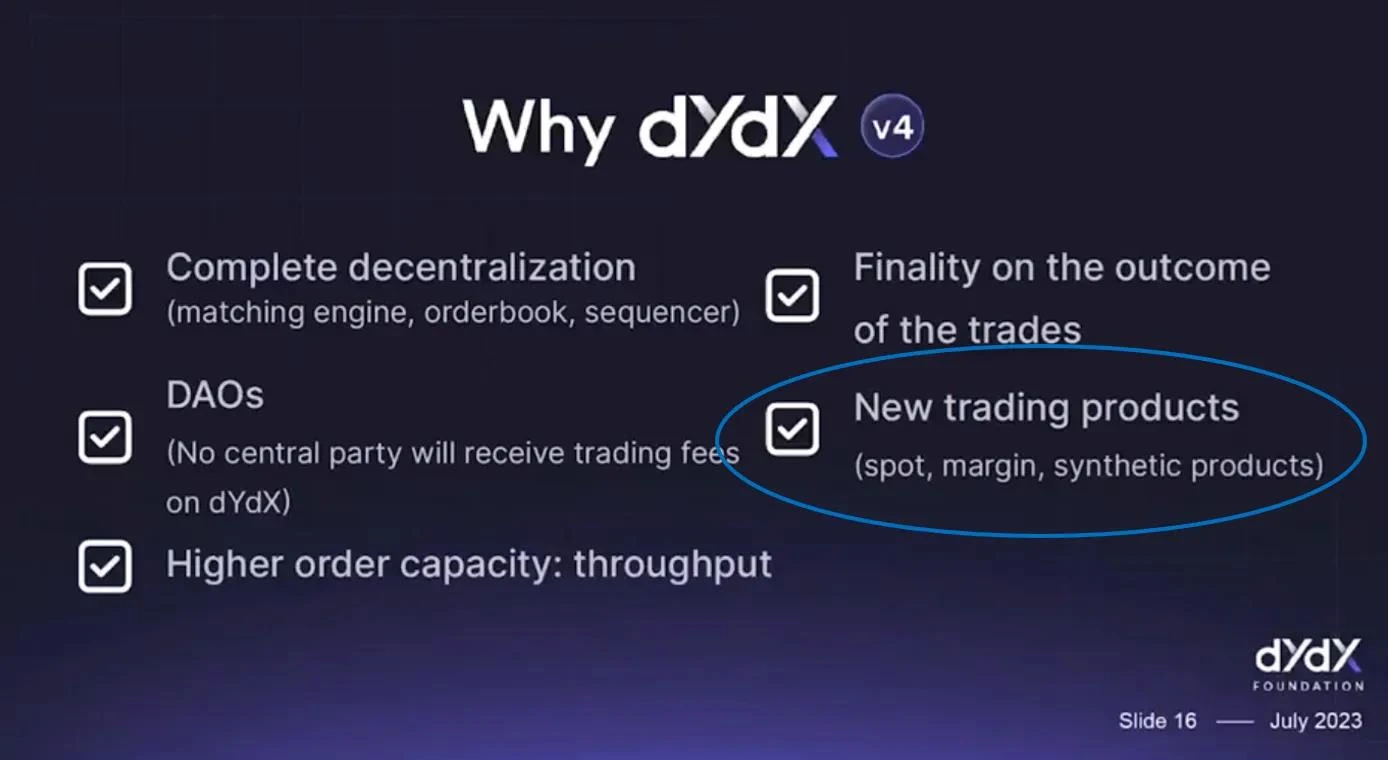 简而言之,v4 是 dYdX 迁移到由 Cosmos SDK 构建的自己的链上的过程。v4 首次在 2022 年 1 月宣布,随后在 2022 年 6 月发布了关于 dYdX 链的详细信息。