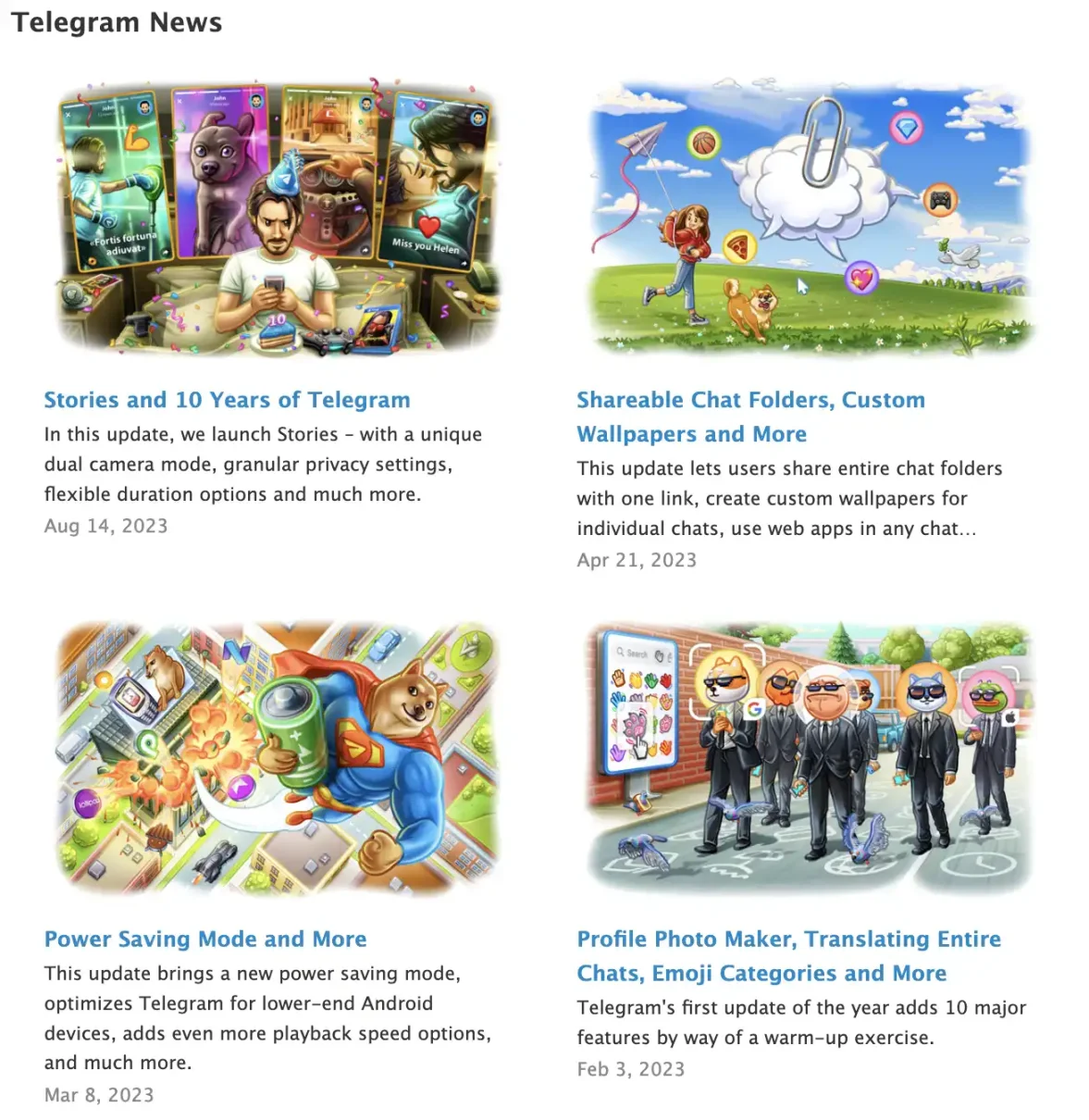 2022 年开始,Telegram 产品更新的速度明显提高,且主要面向社交方面