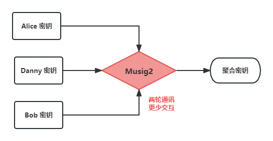 与 ECDSA 相比,Schnorr Signature 更贴合比特币签名的本质。不仅性能更佳,签名长度更短,还具备线性特性,使得密钥聚合变得简单,不再需要多签所需的特殊技巧。这种线性特性易于理解,各参与方的密钥通过简单机制聚合形成新密钥。聚合机制有多种方式,例如 Blockstream 提出的 MuSig 以及更新版本的 MuSig 2 。在 MuSig 2 方案中,多个签名能够从各自私钥生成一个聚合公钥,然后共同为该公钥生成有效签名,将交互轮数从原先的三轮(MuSig)优化至仅需两轮。