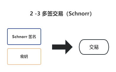 而在 Schnorr Signature 场景中,链上交易只需要一个聚合的公钥和一个签名即可,降低了很多的交易字节数,也就是降低了转账成本。