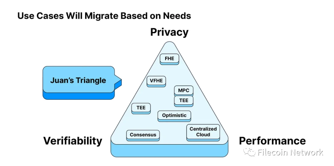 说起选择最大化的概念,就不得不提“胡安三角(Juan's triangle)”,该术语是在 Protocol Labs 的创始人 Juan Benet 解释 为何不同用例(在未来)会有不同的分布式计算网络来支持时创造的。