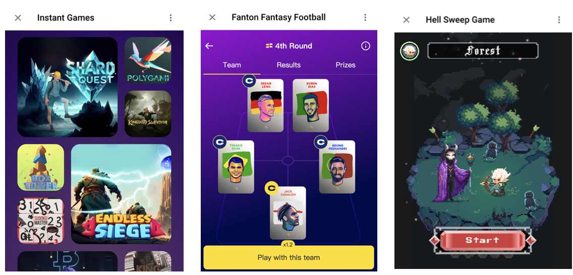 左:Instant Games;中: Fanton Fantasy Football ;右:Hell Sweep Game