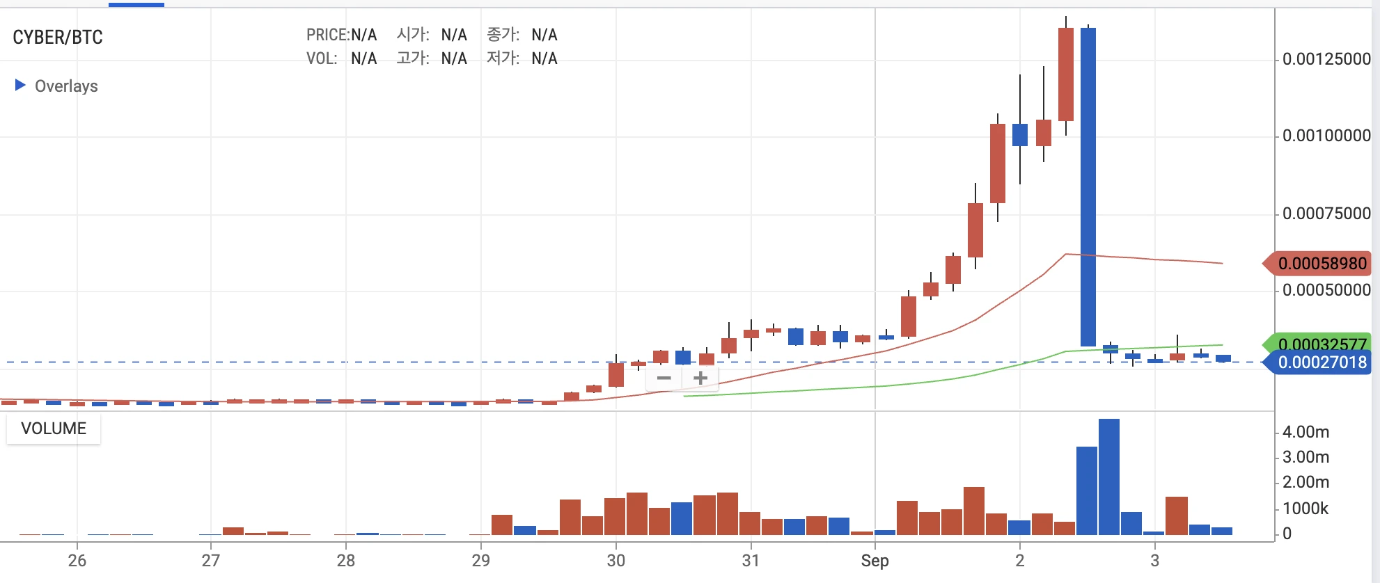 CYBER 的价格也随着韩国投资者交易热情的活跃而不断飙升。在最高点时,CYBER 的价格约是现在的四倍。
