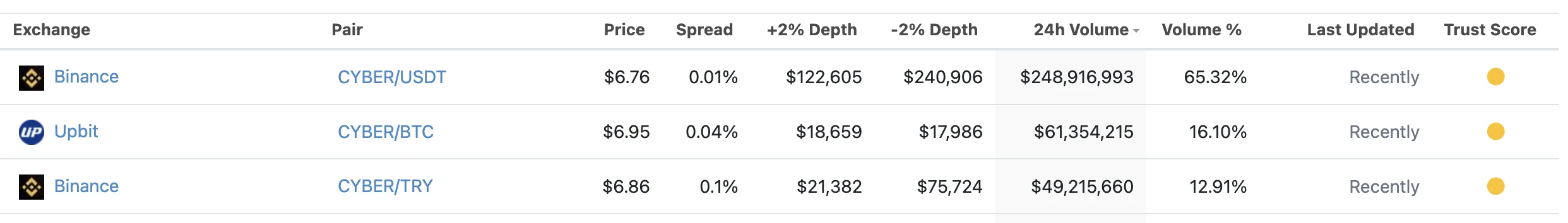 Upbit 作为 CYBER 代币最大的持有者,其持有数量也超过了币安。