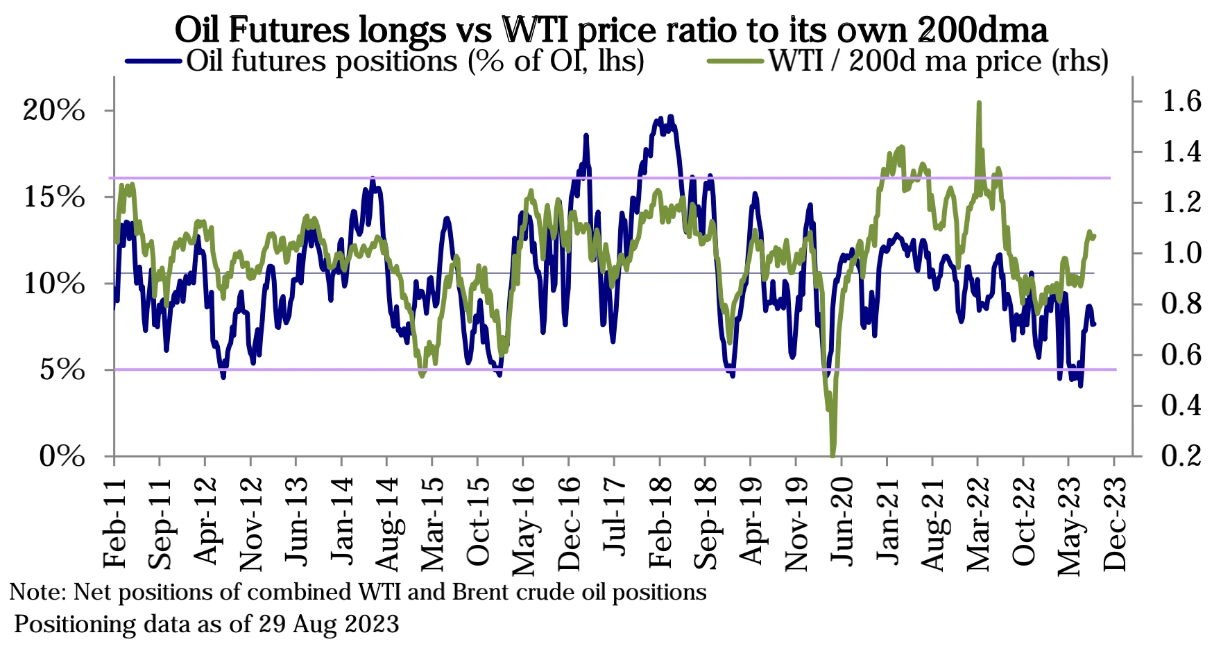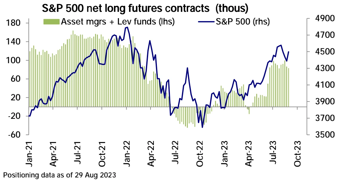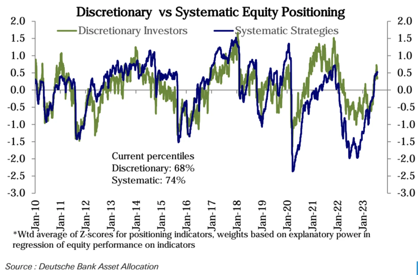 根据德意志银行统计的指标,美股市场 7 月底以来主观资者仓位最近急剧下滑至略低于中性,直到上周略有回升并重回中性以上,当前位于历史 53 百分位。而系统性策略仓位在自 6 月中旬以来持续上升后,过去两周有所下滑当前位于历史 61 百分位。