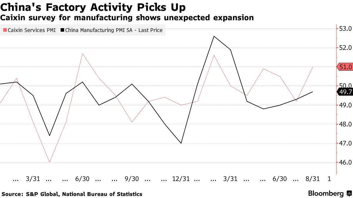此外上周的财新 8 月制造业 PMI 出乎意料地扩升至 6 个月新高重回扩张区间,该数据进一步证明,有针对性的经济刺激政策正在产生一定效果,并预示工厂的低迷可能已接近尾声。并且建筑业改善相当明显,市场分析近期地方政府专项债和政府融资平台债券发行都在提速,相应的公共设施投资有所增加。