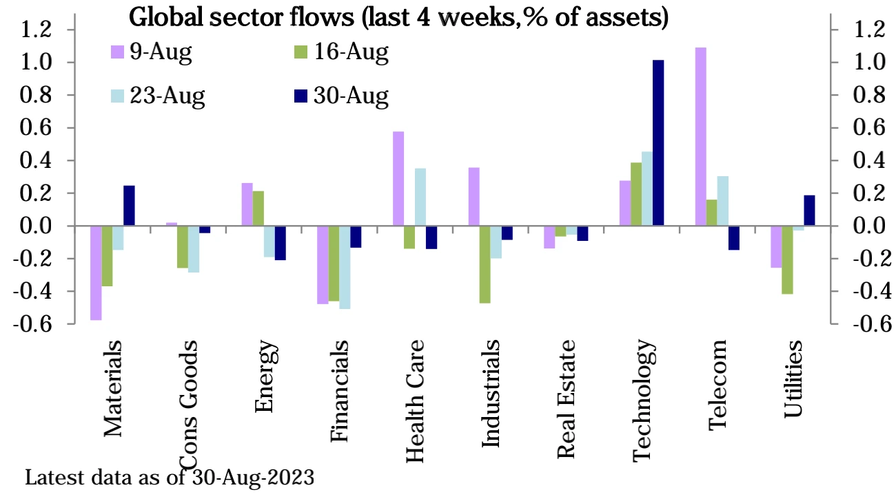上周投资者对股票基金,特别是在美国和新兴市场,以及科技行业重新关注;主观投资人加仓,系统性策略资金减仓。