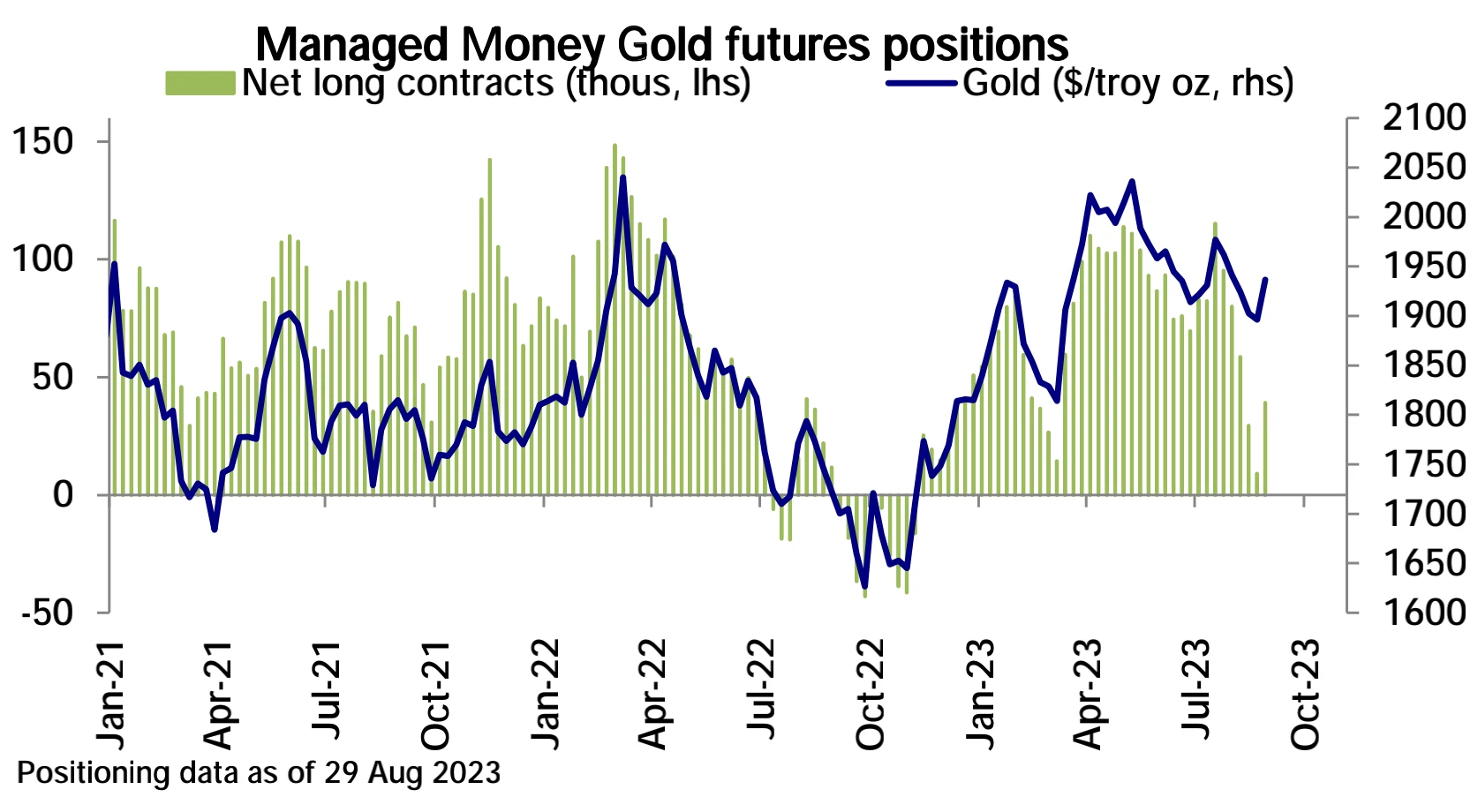 在外汇市场,美元的净空头下降,这可能意味着投资者对美元变得更加乐观。在商品市场,石油的净多头持平,黄金和白银的净多头增加,而铜的净空头减少:
