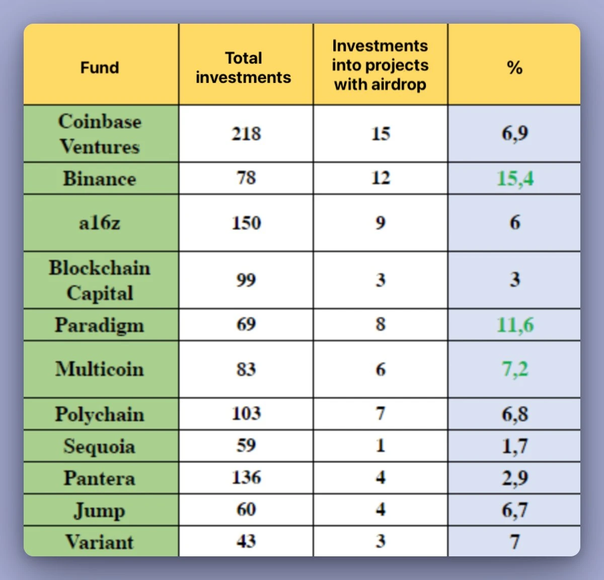 在下文中,海外 KOL ardizor 梳理了业内较活跃的一批 VC,并整理了这些 VC 所投资的项目中哪些曾对社区进行过空投,最后还对比了各大 VC 的投资标的空投率,其结论对于热衷空投的用户或许具有一定的参考意义。