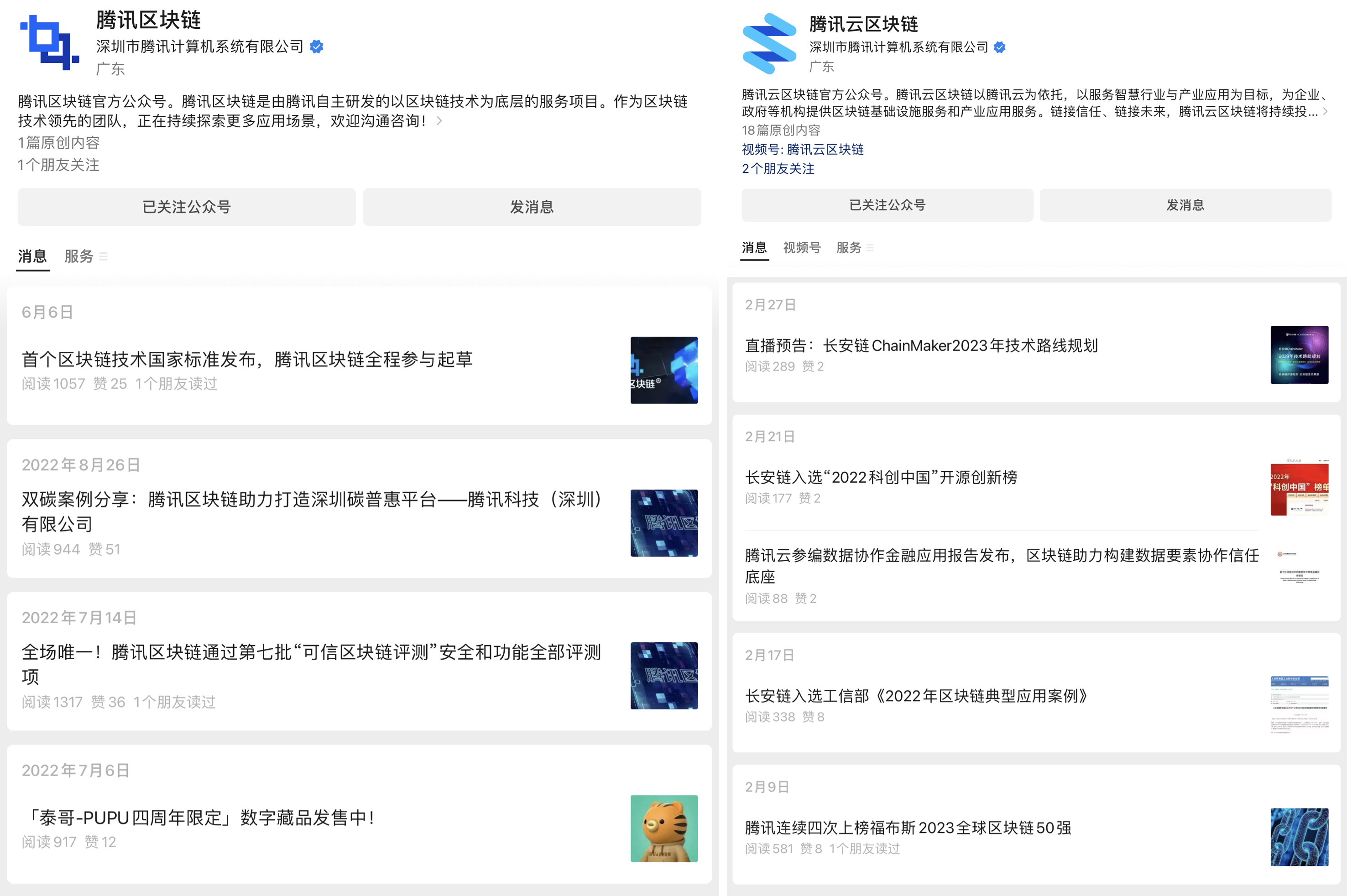 幻核关停后的腾讯区块链与腾讯云区块链公众号更新内容