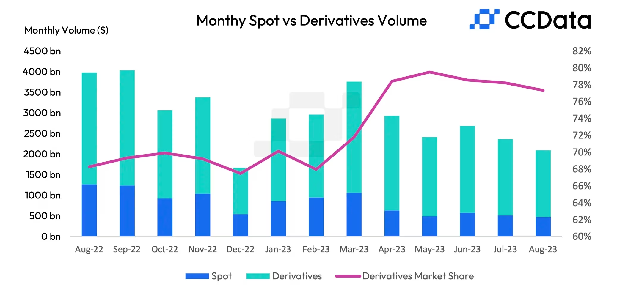 8月CEX现货和衍生品总交易额下降11.5%,现货交易额创2019年3月以来新低