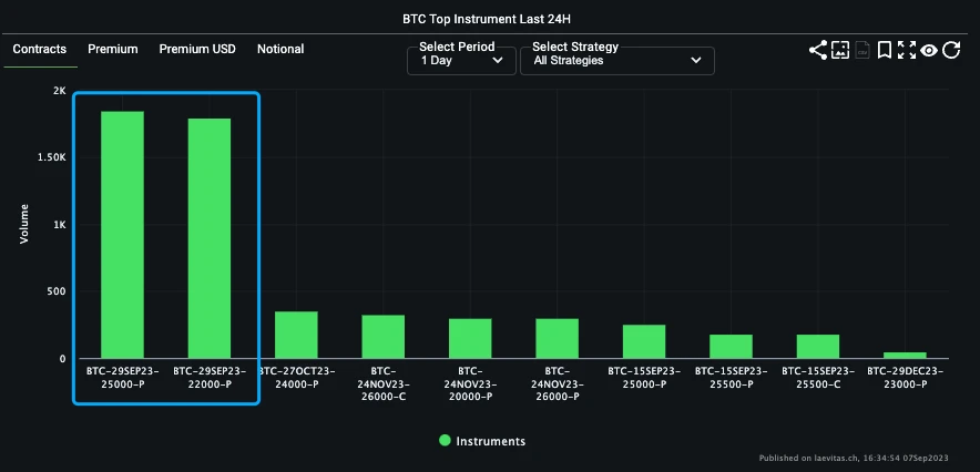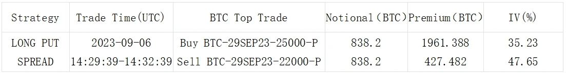 Source: Laevitas , BTC 29 Sep 23 20000 vs 25000 Long Put Spread 成为过去一日的市场焦点
