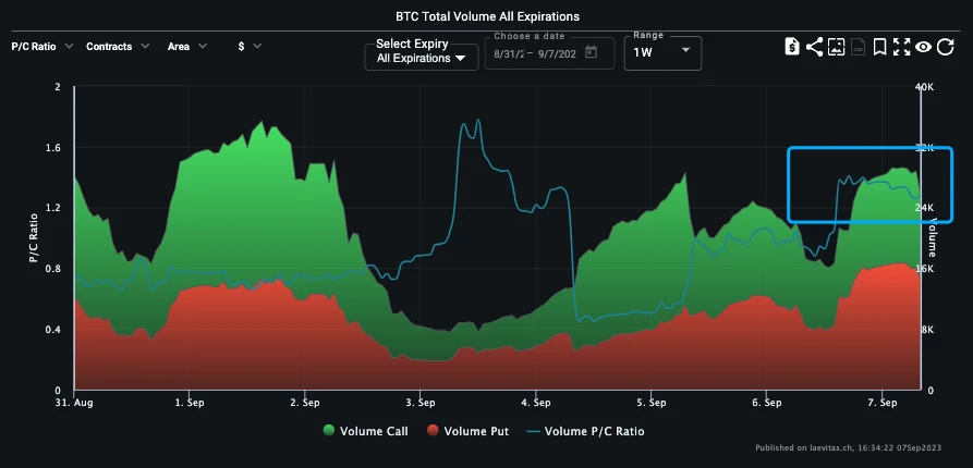 Source: Laevitas, BTC 29 Sep 23 20000 vs 25000 Long Put Spread 成为过去一日的市场焦点