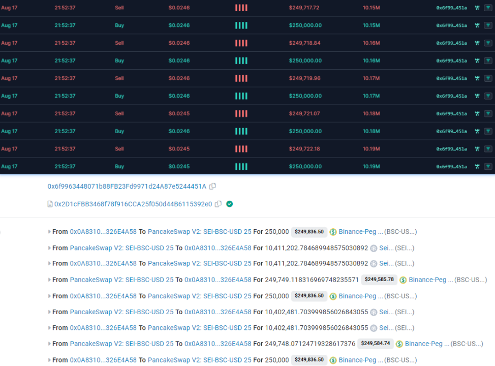 首先,SEI 代币所有者 0x 0 a 8310 eca 430 beb 13 a 8 d 1 b 42 a 03 b 3521326 e 4 a 58 以 1u 的价格兑换了 249 枚 SEI。