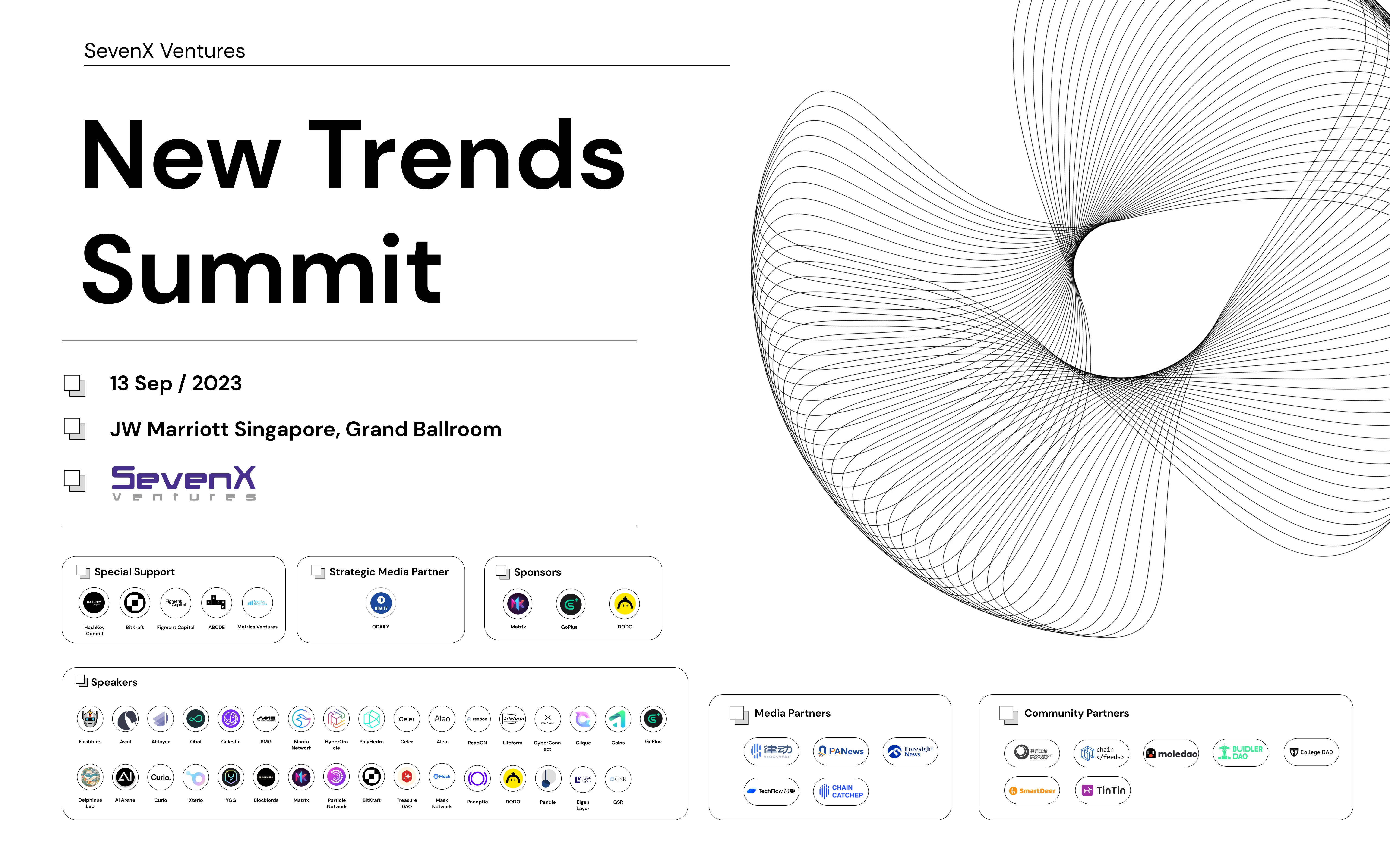 作为 SevenX Ventures 在亚洲举办的首届峰会,本次活动得到了 SevenX Portfolio Matr 1 x、GoPlus 和 DODO 的赞助支持,以及来自 Hashkey Capital 、Dragonfly、Bitkraft、 Figment Capital、ABCDE 和 Metrics Ventures 的特别支持。
