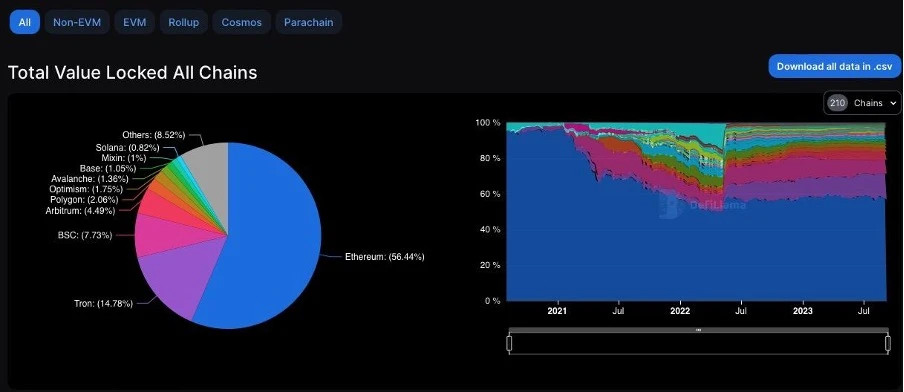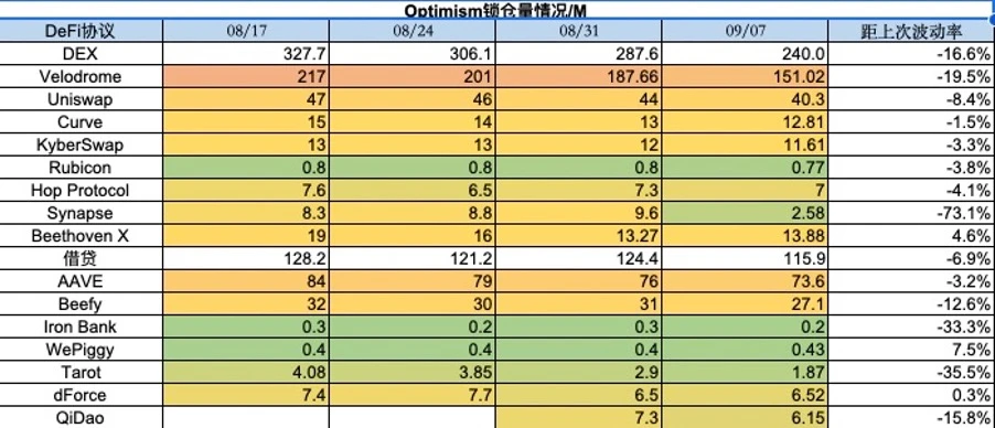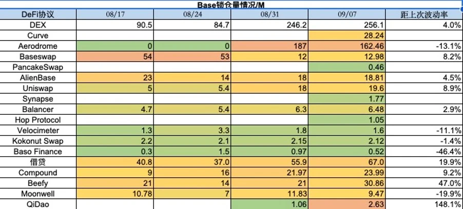 本周 TVL 整体上涨 0.6 b, 上涨幅近 2% , 近几周 TVL 仍成下跌趋势. 本周 ETH 链下降约 5% . 其他链也基本上全面下跌, 同样反映了市场的冷淡情绪. 值得关注的是 Base 链在本周继续出现高达 90% 的涨幅, 过去三十天已累计涨幅 792% , 并且整体协议数已经达到 107 个, 在整体协议数即将完成对 Solana 的超越.