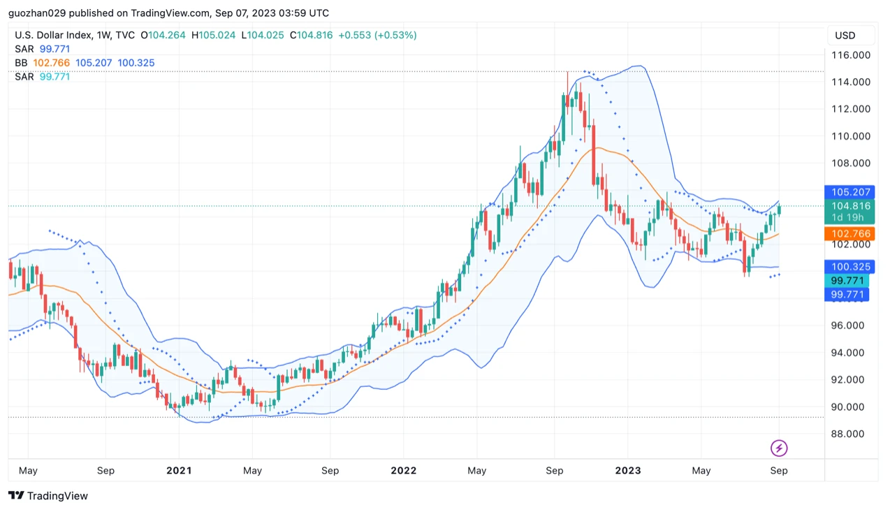 货币流动性趋紧。国际油价上涨至 10 个月最高加剧通胀担忧;同时美国经济数据突显消费者需求和整体经济韧性,提升了避免衰退的概率,市场对美联储 11 月加息的预期升温。美元指数站稳 6 个月最高,压制风险类资产。美股明星科技股急转直下,主流加密货币普跌。