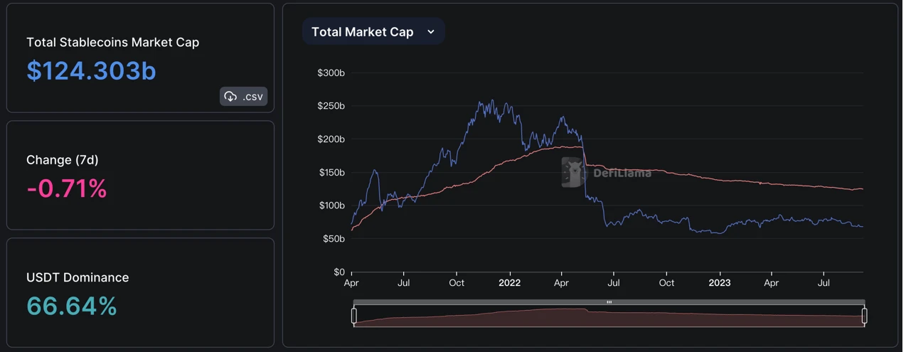 稳定币整体明显下降。USDT 市值增长 500 万美元,但是 USDC 市值下降 1.4 亿美元,而且 USDC 所代表的主要是美国投资者。