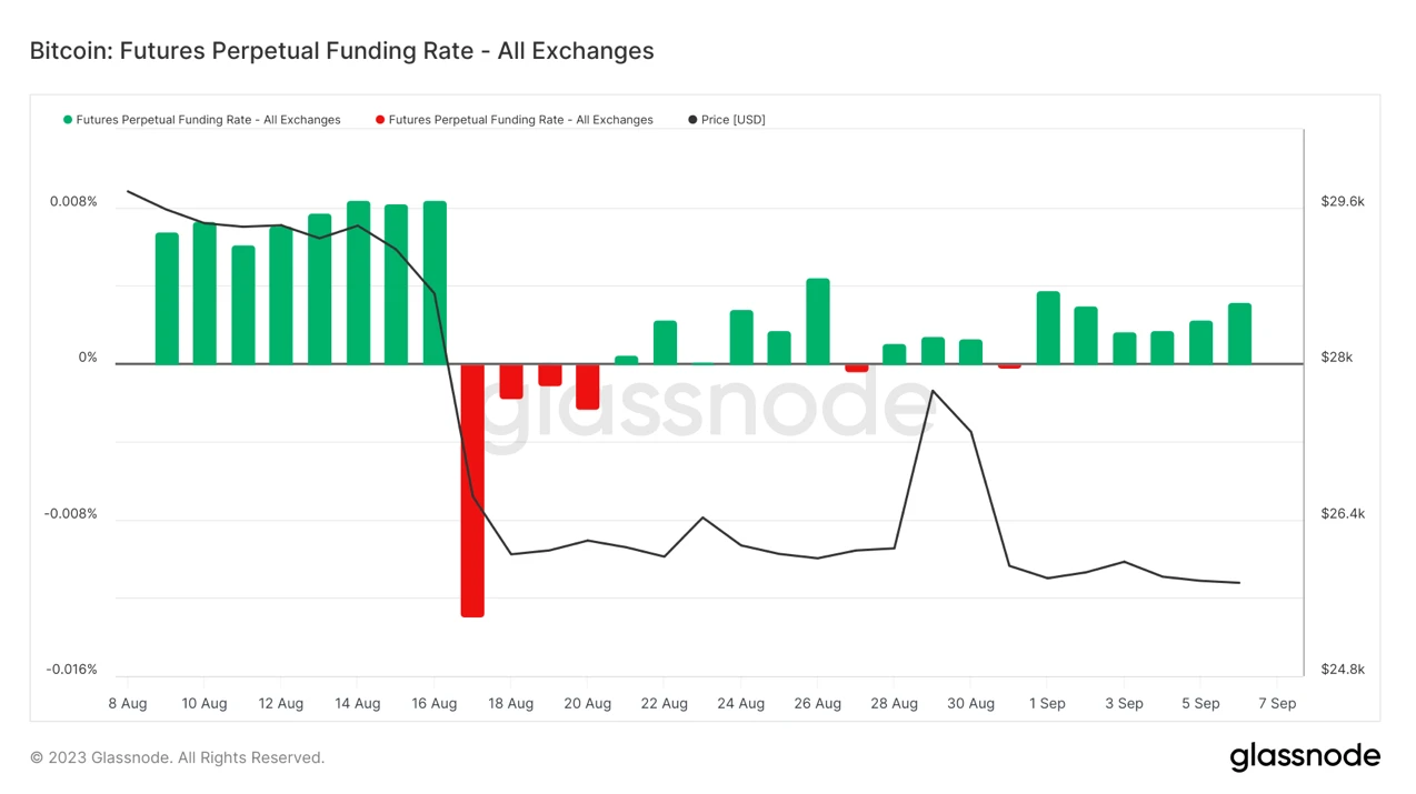 期货资金费率:本周费率中性。费率 0.05-0.1% ,多头杠杆较多,是市场短期顶部;费率-0.1-0% ,空头杠杆较多,是市场短期底部。