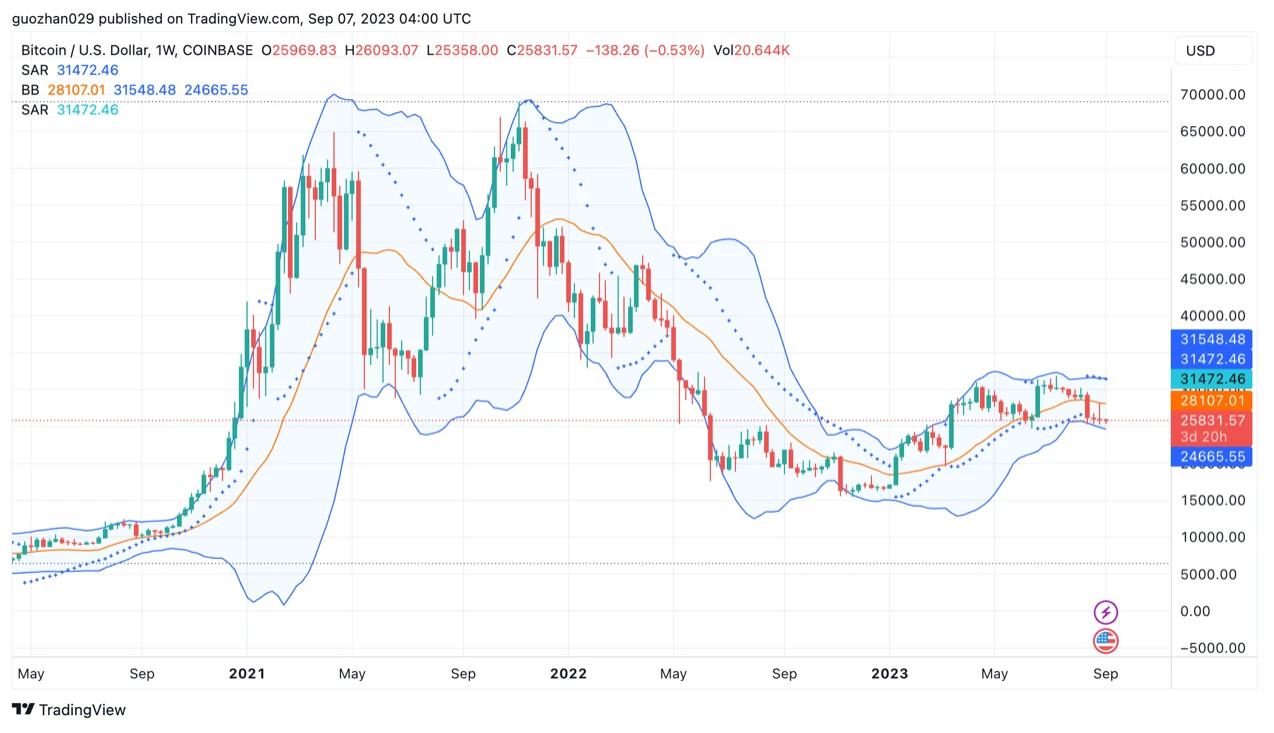 本周 BTC 震荡阴跌。投资者情绪冷淡,CEX 交易所的 8 月交易量下降到今年最低。当前的利好叙事仍然是 BTC 的现货 ETF、BTC 的减半周期以及美联储降息。建议在市场下跌过程中,逐步加仓。