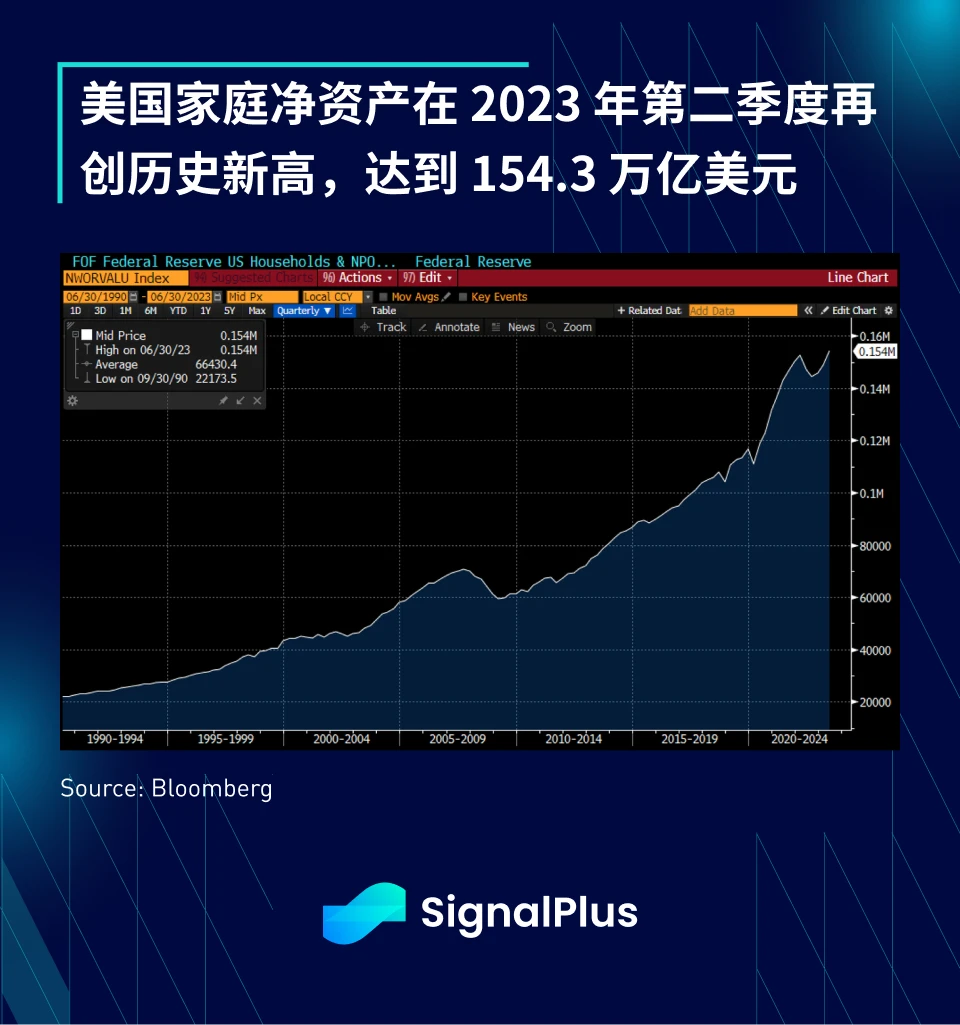 另一方面,美国家庭净资产在 2023 年第二季度增加了 5.5 万亿美元(+ 3.7% ),达到 154.3 万亿美元,再创历史新高,净资产的增长主要得益于股票价值上涨 26 亿美元,以及房地产价值增加 25 亿美元,由于开发商的投入成本飙升,美国房地产市场在缺乏供给的情况下急剧复苏。另外,上周美联储官员的发言实际上比预期的更加鸽派,大多数的谈话都表示政策利率已经是“限制性水平”,不过必要时他们也会“采取更多行动”;纽约联储行长 Williams 表示货币政策“处于一个良好的状态”,而芝加哥联储行长则指出,现在的讨论重点正从政策利率应升至多高转向政策利率应在此维持多久。