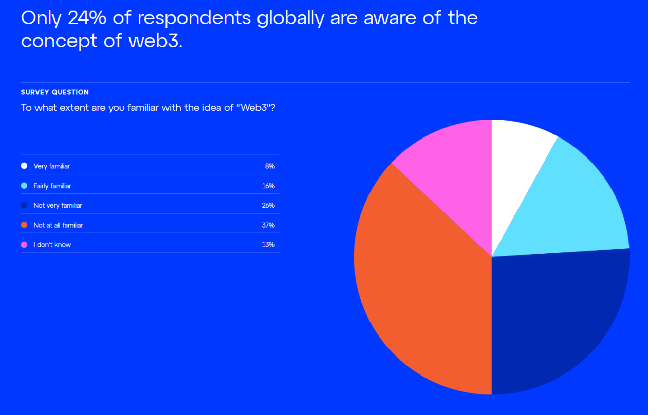 虽然全球对加密货币的了解度很高,但对 Web3 的认识要少得多。