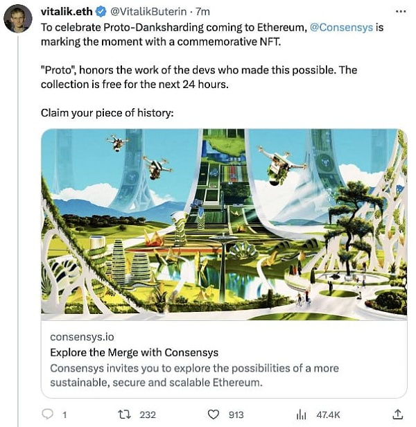 内容为一条关于Danksharding的纪念NFT免费领取链接。尽管这条推文还快被删除,但黑客还是盗走约70万美元资金。