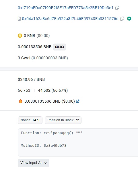 项目方通过调用ccvipaaaqqq()函数,为自己(0xf719)添加了巨量的代币。