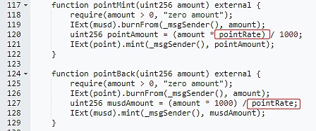 以下为MCoin与MUSD的兑换代码,数量由pointRate决定。