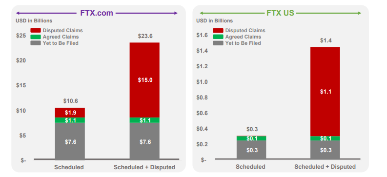 ●在 FTX.com 和 FTX US ,债务人迄今已列入了 109 亿美元的客户索赔。