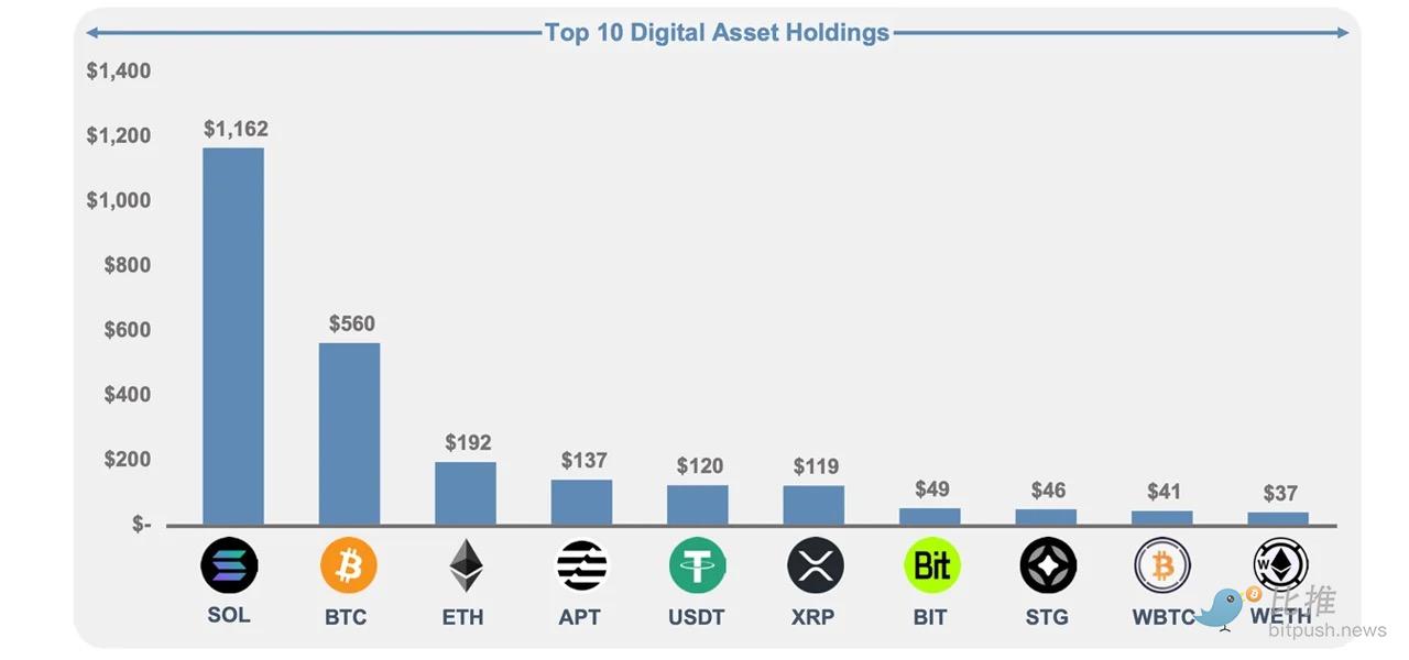 上述 10 大币种占据了 FTX 加密资产总持仓的 72%,剩余 28% 的持仓则由超过 400 种其他山寨币构成。