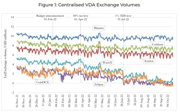 (b)TDS 的实施对所有影响最大,印度集中式 VDA 交易所的交易量在征收后的四个月内下降了近 81 %(即 2022 年 7 月至 10 月);
