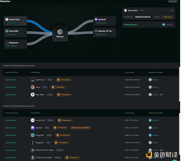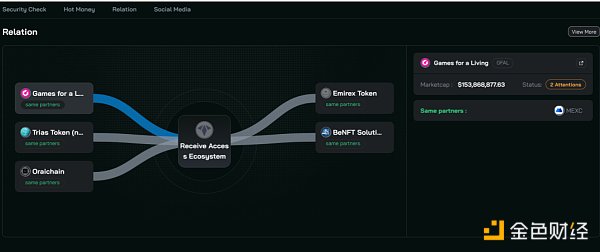 另外EagleEye平台会向用户揭示某些项目背后的关系,对用户判断其项目叙事和生态发展,深挖团队能力有一定的帮助。