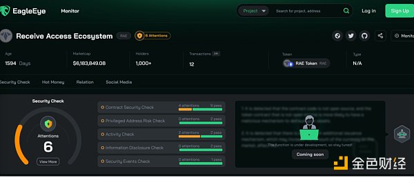EagleEye会对项目底层合约代码进行 自动化审计,帮助用户发现风险,判断风险影响对喜欢“冲”的用户做一层保护。