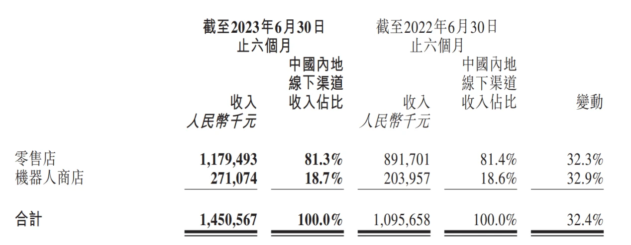 (1)线下收入为 14.51 亿元,占总收入比重上升 5.1% 至 51.5% ,零售店与机器人商店分别实现 11.79 和 2.71 亿元收入,同比分别增长 32.3% 和 32.9% ;零售店和机器人商店数量较 22 年年底分别增加 11 和 118 家至 340 和 2185 家。增长主要得益于疫情后线下消费的复苏和店铺装修陈列效果改善,高铁、机场、影院等场景的机器销售增长迅速。