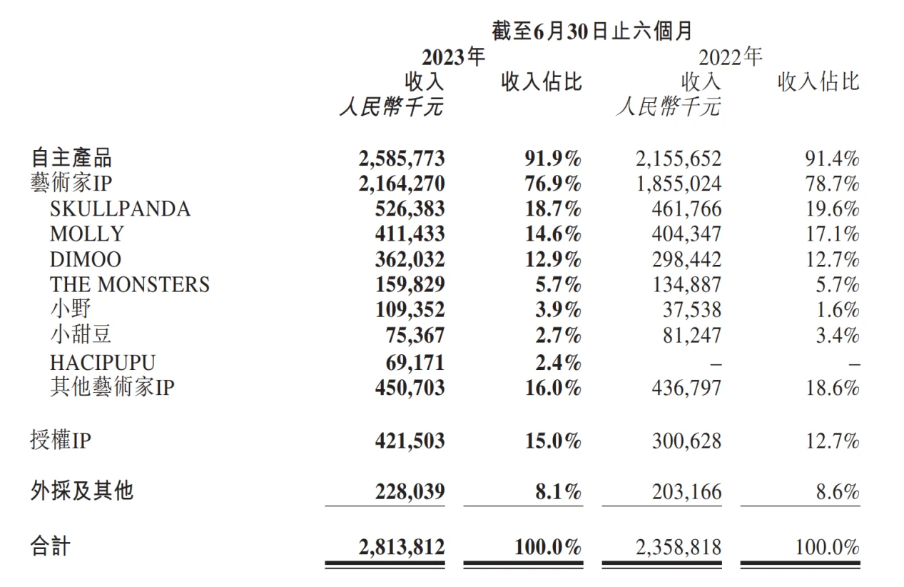 授权 IP 实现收入 4.22 亿元,同比增长 40.2% ,上半年泡泡玛特持续推进外部版权方的合作,与更多的版权方进行了多元化、多种风格、多种方式的合作,推出的新产品贡献了销售。