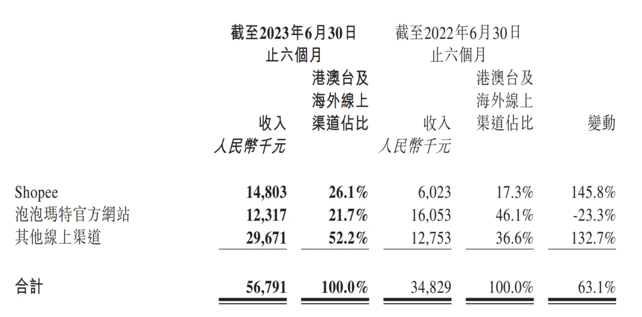 Shopee/泡泡玛特官网/其他收入 0.15/0.12/0.30 亿元,分别同比变化 145.8% /-23.3% /132.7% ,泡泡玛特官网收入的下降原因为公司减少对官网广告投放,增加了销售转化率较高的平台进行宣传推广。