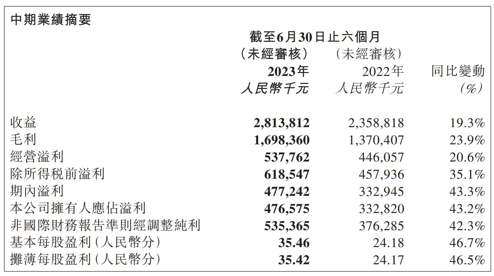 23 H 1 泡泡玛特实现营收 28.14 亿元人民币,同比增长 19.3% ,经调整净利润 5.35 亿元,同比增长 42.3% 。归母净利润 4.77 亿元,同比增长 43.2% 。