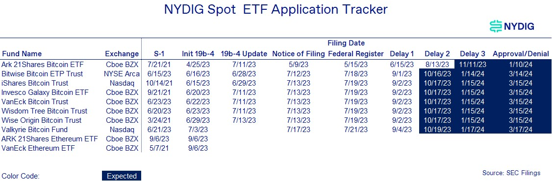 近期, SEC 决定延长对几只现货比特币 ETF 的评估期,表明其继续保持谨慎态度。这一决定是他们最近在 DC 上诉法院的灰度案中败诉之后做出的,SEC 可以在 2023 年 10 月 13 日之前对该裁决提出上诉。
