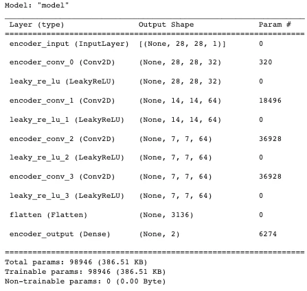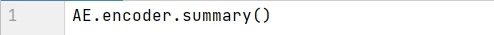 用 summary() 函数打印出编码模型的信息,用来描述每层的名称类型 (layer (type))、输出形状 (Output Shape) 和参数个数 (Param #)。