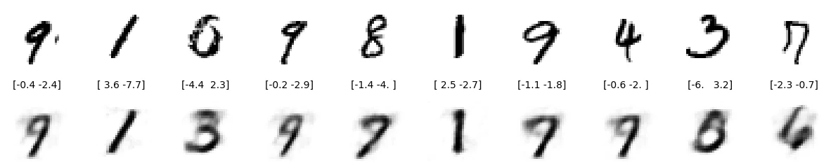 该流程如下图所示,original input data 是高维图片数据,图片包含很多像素因此是高维的,而 representation vector 是低维表征向量,本例用的二维向量 [-2.0, -0.5 ] 是低维的。