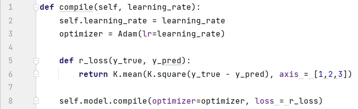 构建好模型之后,只需要定义损失函数和编译优化器。损失函数通常选择均方误差 (RMSE)。编译 complie() 函数的实现如下,用的是 Adam 优化器,学习率设为 0.0005 :