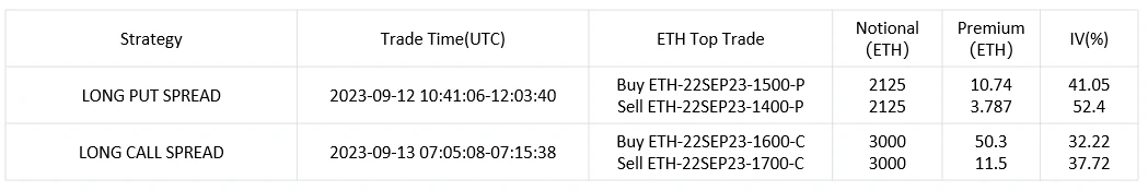 交易方面,价格的反弹使得看涨期权重新吸引了交易员的兴趣,整体 P/C Ratio 明显回落。在大宗交易上,Bear Put Spread 仍是近期关注的热点,多数成交在 FOMC 后一天的 22 SEP 23 之上,形成了对价格可能下跌的保护。