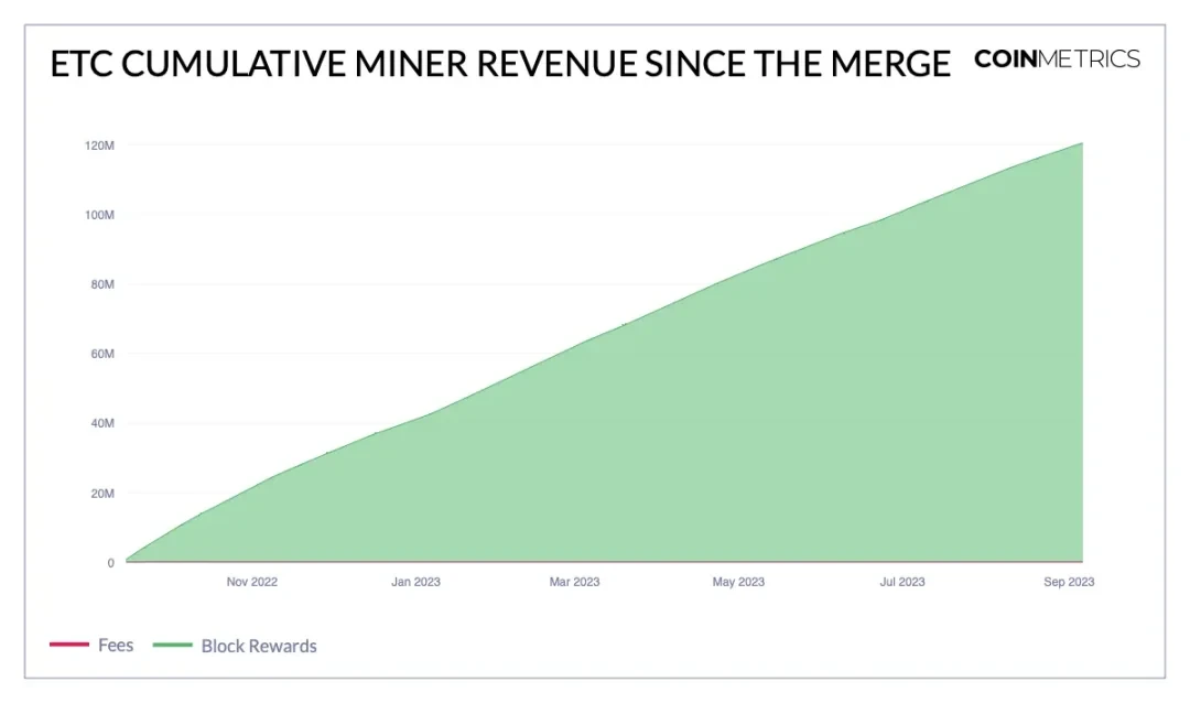 其他可通过 GPU 挖矿的 PoW 链,如以太坊经典 (ETC) 或 ETHPoW,与 ETH 相比,其链上活动和应用程序要少得多,这些生态缺乏对即时交易包含的需求,因此费用较低,并且缺乏 MEV 基础设施。举例来说,ETC 的算力和价格的脱钩趋势突显了这种替代方案的吸引力正在下降,尽管合并后算力的激增表明矿工涌入该网络,他们不太可能实现收支平衡并获利。