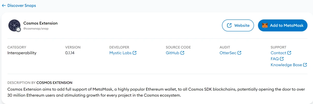 2. 本文以 Cosmos Extension 为例,将 Snap 添加进 MetaMask。
